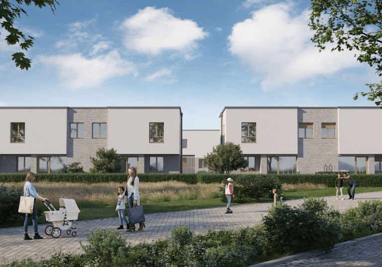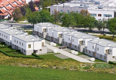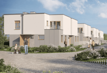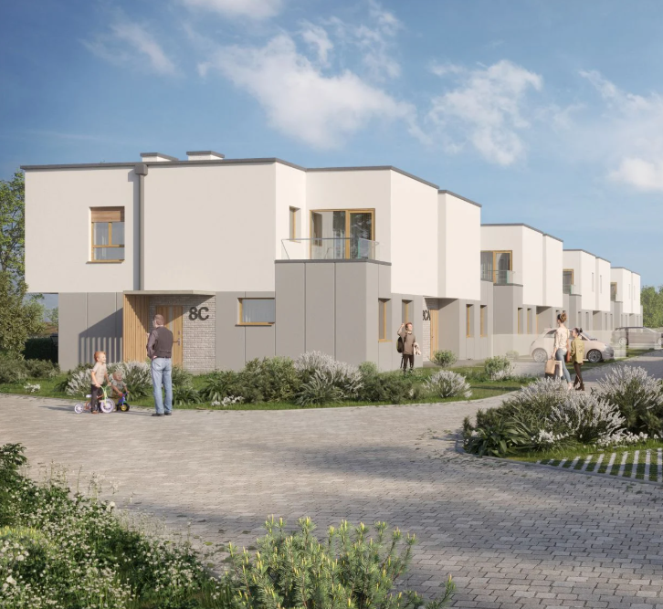 14 budynków o modernistycznej bryle.